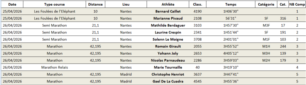 Félicitations à tous les coureurs de l'ALB. Les couleurs du Club sont fièrement portées en France et à l'Internationale. =)